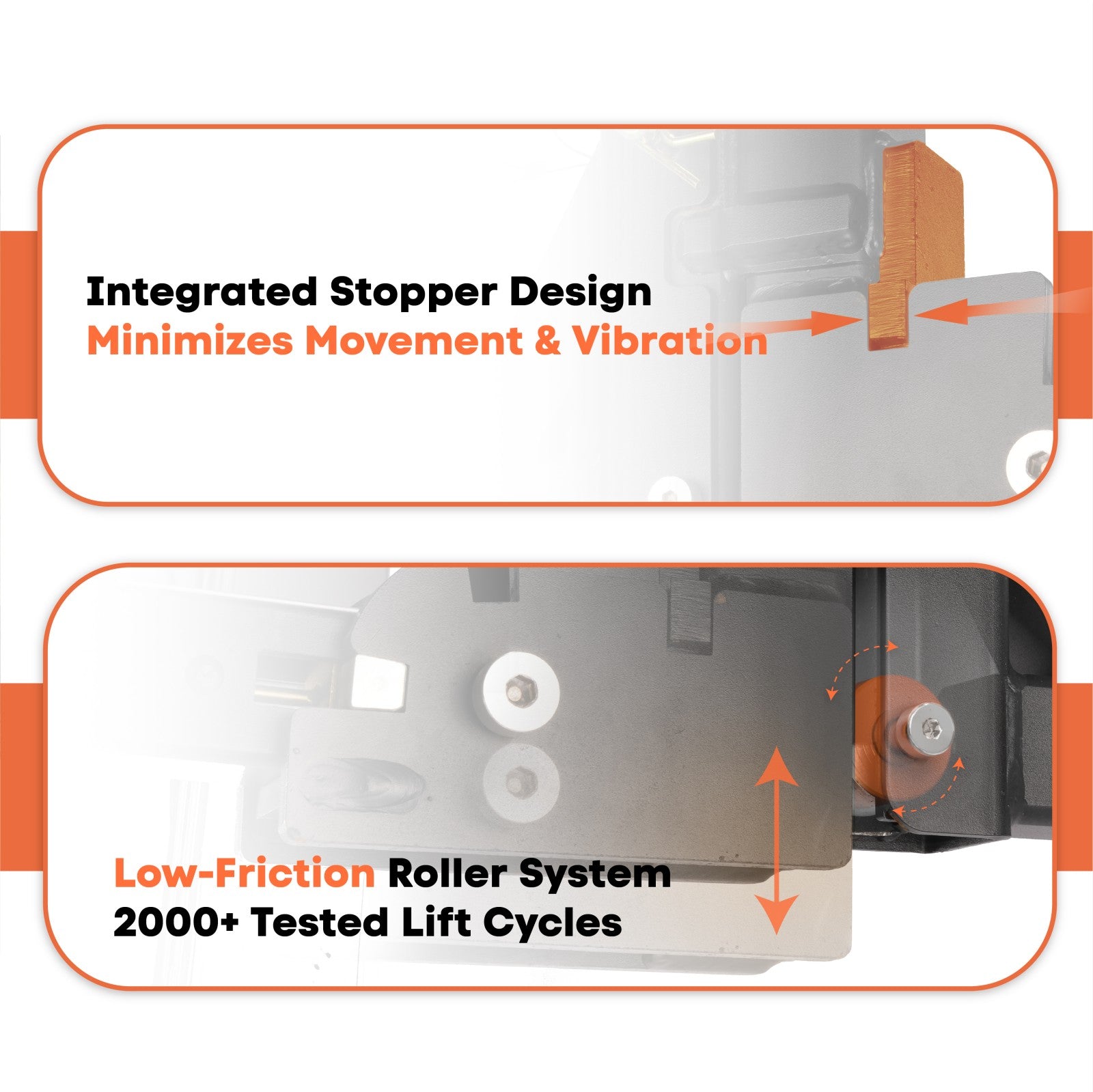 A patented limiter system minimizes wobble, while the roller structure reduces friction, improving stability and extending the rack’s lifespan.