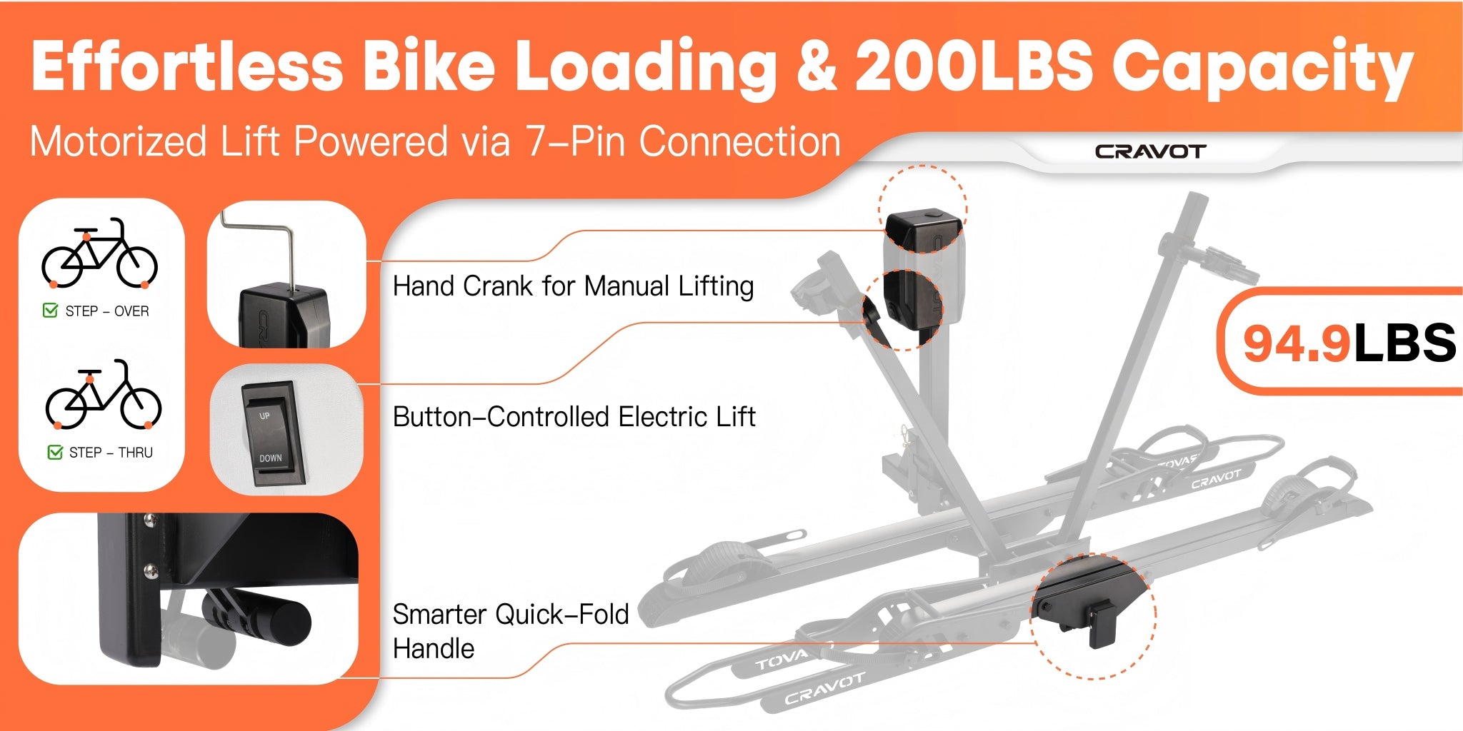 CRAVOT CyberRack E2 Electric Hitch Bike Rack, 2’’ Receiver, 200 LBS Capacity
