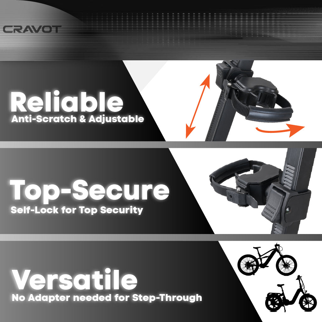 Multi-Layered Security- Engineered for stability: Three-point fixing, self-locking system, and strong straps keep your bike secure in any condition.